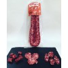 Carne magra y panceta de cerdo, sal, lactosa, dextrosa, especias naturales, antioxidante E301, conservador E252, colorante E120 y tripa natural del cerdo.