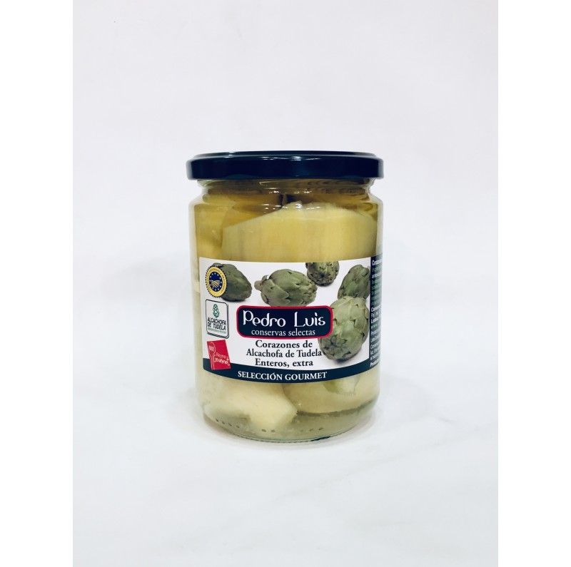 Conservas Pedro Luis destaca por su buen hacer en lo que a conservas vegetales se refiere. Situados en Lodosa (Navarra) elaboran estas magníficas alcachofas con Indicación Geográfica Protegida con prontitud desde su recogida en la huerta tudelana. Se pelan una a una y se repasan artesanalmente. Se conservan en su propio pH (sin acidificar), con lo que se consigue mantener el sabor natural de la alcachofa. Una auténtica delicia de lo más saludable.